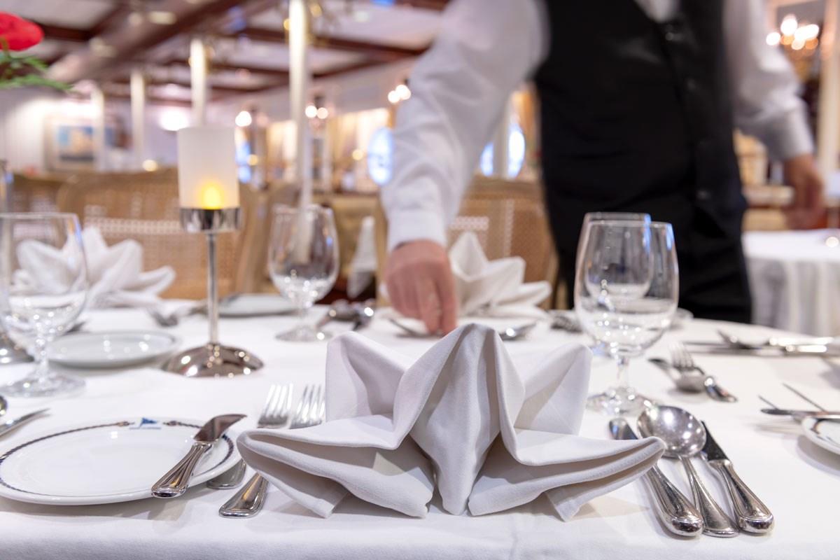 befitting a tasteful restaurant. Of course, we would not presume to dictate your seating preferences. On all three ships, you are free to dine when and with whomever you wish - including with our officers, who join our guests in the dining room most nights. The dress code? No need for formal gowns and black tie, casual elegance is the order of the day and every single night.