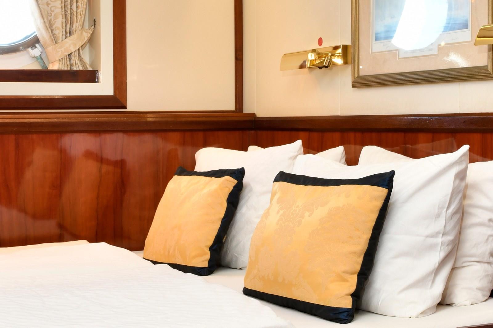 All but six of her 98 cabins are outside, and for the ultimate indulgence, two 40 square metre owner’s suites may be combined to accommodate up to 8 guests.